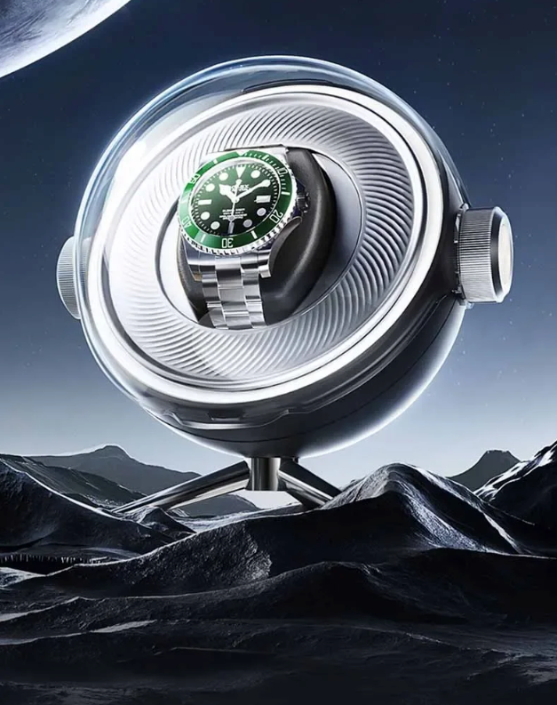 Hộp xoay đồng hồ mô phỏng chuyển động tự nhiên của cổ tay, nhẹ nhàng xoay đồng hồ tự động để giữ cho nó chạy khi không đeo. Chuyển động nhất quán này giúp các cơ chế bên trong hoạt động và được bôi trơn tốt, duy trì độ chính xác và tuổi thọ.