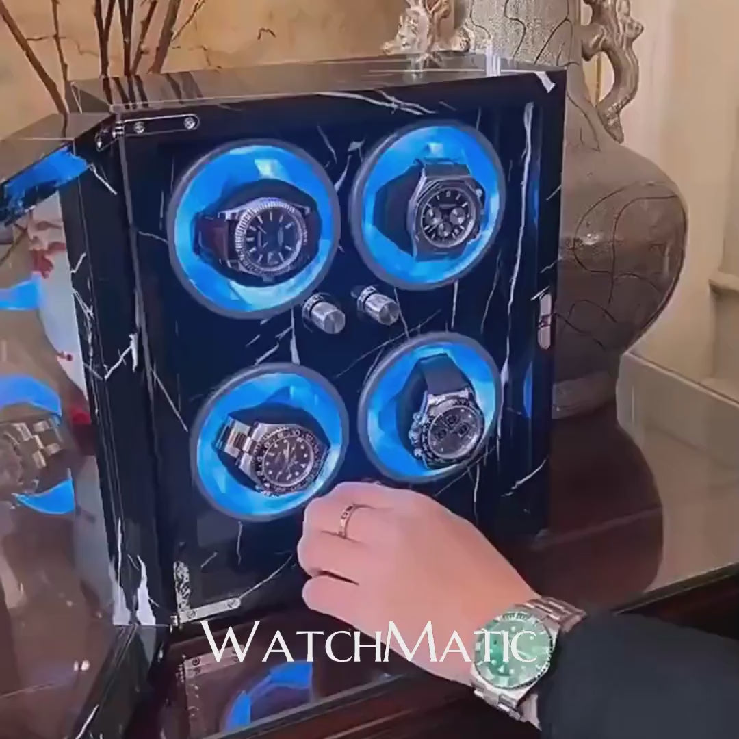 Our winders use a controlled rotation system that alternates smooth movement with balanced rest intervals, keeping your watch wound without unnecessary strain. This gentle, intermittent pattern supports accuracy, protects delicate components, and ensures your automatic timepiece stays ready to wear without the risk of overwinding.