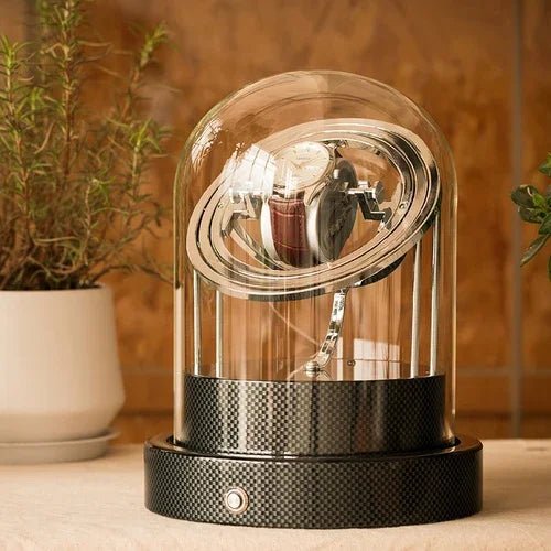 Hộp xoay đồng hồ mô phỏng chuyển động tự nhiên của cổ tay, nhẹ nhàng xoay đồng hồ tự động để giữ cho nó chạy khi không đeo. Chuyển động nhất quán này giúp các cơ chế bên trong hoạt động và được bôi trơn tốt, duy trì độ chính xác và tuổi thọ.