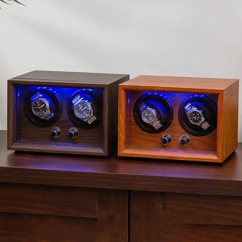 Hộp xoay đồng hồ mô phỏng chuyển động tự nhiên của cổ tay, nhẹ nhàng xoay đồng hồ tự động để giữ cho nó chạy khi không đeo. Chuyển động nhất quán này giúp các cơ chế bên trong hoạt động và được bôi trơn tốt, duy trì độ chính xác và tuổi thọ.